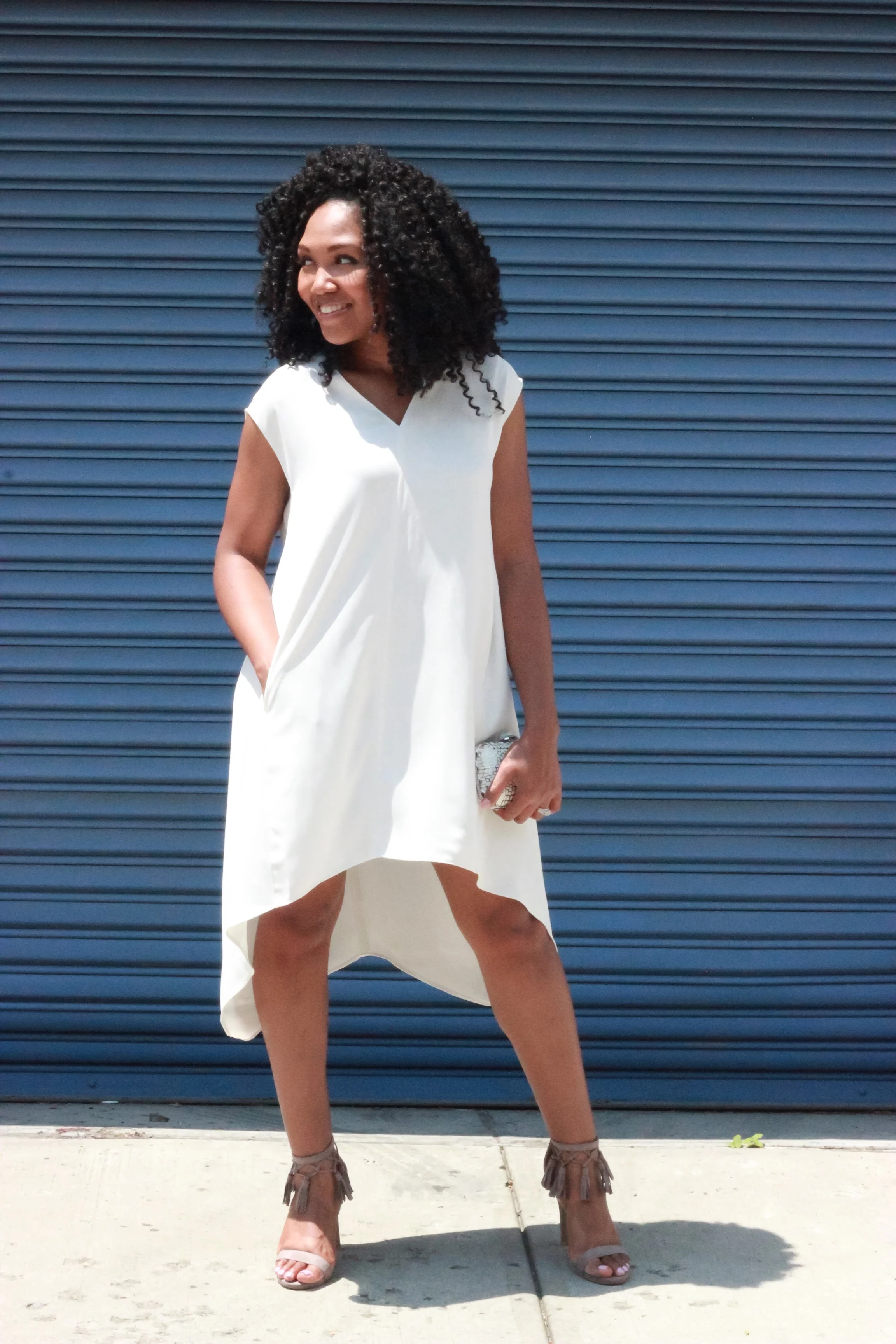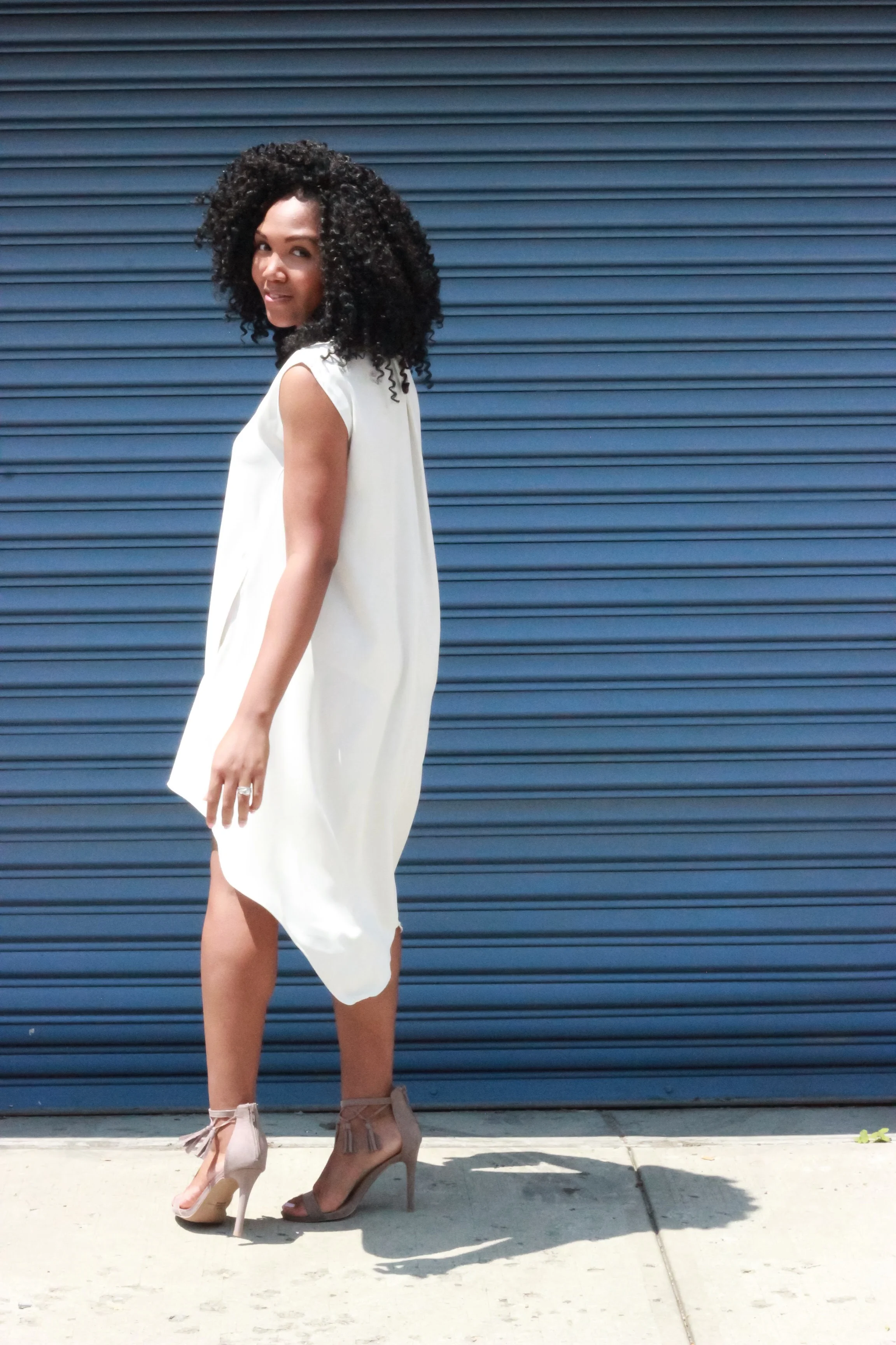 Next up on our "Summer Trends Series" is all-white-party attire. Every summer, countless all-white parties are hosted, from back yard barbecues to the international event, Diner En Blanc and so much more. Now, I'm sorry Bey-hive, "Becky with the good hair" or not, I drool when I walk past the Rachel Roy section and that's exactly who this dress is by. Her garments are so amazing with their architectural construction and strong but smooth feeling material.