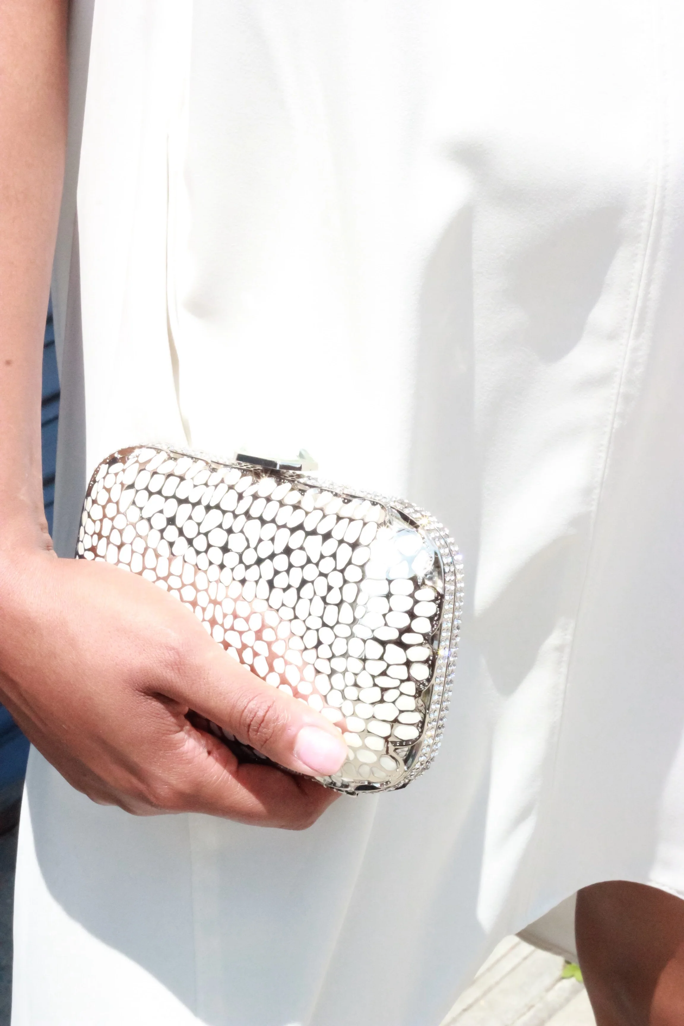 I paired my all white dress with (my version of) nude, tassel pumps (sold out) and a small white clutch with metallic accents. I kept this look simple and clean to show you that even in it's simplest form, (minimal accessories), structure and fit can be just as powerful as a bedazzled outfit.
